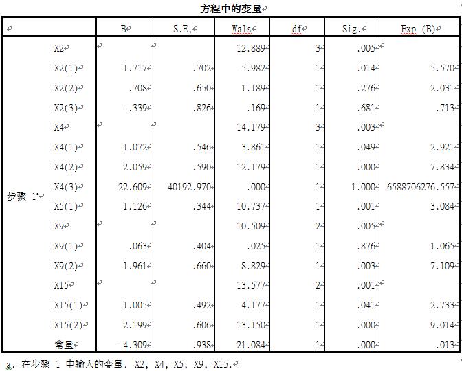 这个是我做spass的二元logistic模型,里面的系数都是多分类变量,我设的虚拟变量,每个系数怎么求,比如X2这个系数,X2(1)的系数是1.717,但是我不知道X2的系数是多少?难道是把X2下面的X2(1)、X2(2)、X2(3)的系数相加吗?应该不会这个样子吧,但是我在书上有讲解