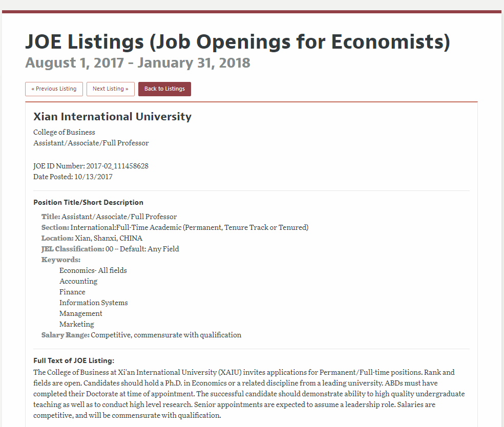 近几年海归的就业形势看来是不太乐观,西安外事学院这种民办高校都来AEA年会找人了。