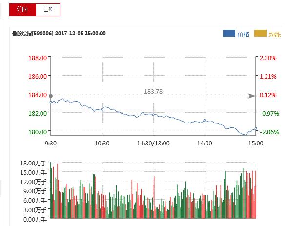 纵观今日鲁股市场,指数整体表现低迷。早盘,鲁股综指大幅低开。随着前期较为活跃的题材板块及中小盘股的持续走低,指数呈现持续阴跌态势,无奈整个上午时间段空方始终占据主动,指数最终反弹无果仍未由绿翻红。随后,鲁股指数在整个上午的时间段一直保持低位震荡态势,午间收盘阶段,指数仍以绿盘报收。午后,指数延续上午低迷行情,在大盘及房地产板块的大力打压下,鲁股指数持续走低。尾盘阶段,指数尽管在银行及超级品牌概念的带动下试图反弹但无奈空方过于强大,指数反弹失败再创新低。另外,鲁股市场中16只个股实现上涨,170只个股下跌。上涨股票数较前一日出现大幅萎缩。