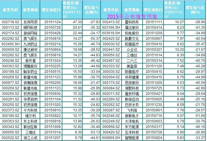 面对增持的近900家上市公司,我们如何筛选投资品种呢?这里根据大股东增持、股价跌破定增价20%以上,若分别在2015年、2016年、2017年公布增发价股票作为筛选条件,分别筛选出50只、44只、2只。为何以2015年、2016年、2017年增发的股票作为筛选条件呢?1、增发公布方案之后,后期会实施增发方案,经过一年之后就开始陆续解禁,而对于跌破增发价较多的股票,本身就是提供一个抄底机会。2、再加上大股东增持,也是对该目前股价值的再次肯定。处于双层价值考虑,具体情况,详见下表。2017年符合条件的分别是健盛集团(603558)和五洋科技(300420)。
