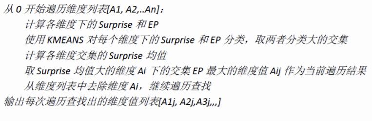 从四象限中可知,维度中 EP 和Surprise 分类大的维度值可作为候选维度。对 EP 和Surprise分类可采用前面介绍的 kmeans 分类方法。