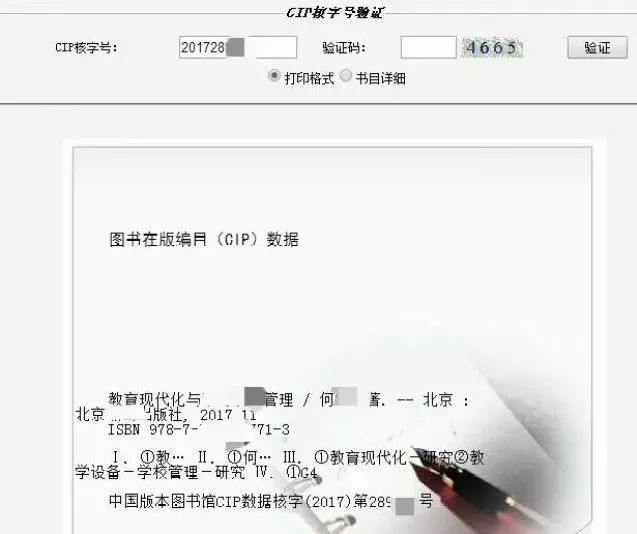 记者登录国家新闻出版广电总局官网,查到了“何某某著”的《教育现代化与教育设备管理》,中国版本图书馆CIP数据核字显示,这本书2017年11月由北京XX出版社出版,ISBN(国际标准书号)号为978-7-5402-4771-3。