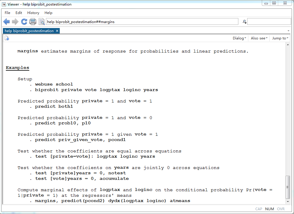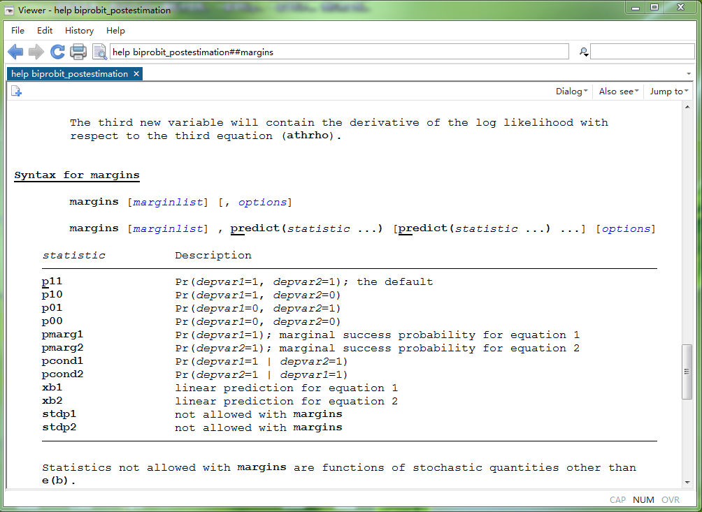 [R] biprobit postestimation -- Postestimation tools for biprobit