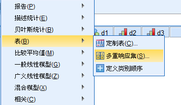 kuangsir6 发表于 2017-12-20 08:12 SPSS---分析---表---多重响应集,定义多重响应集 然后, SPSS---分析---表---定制表