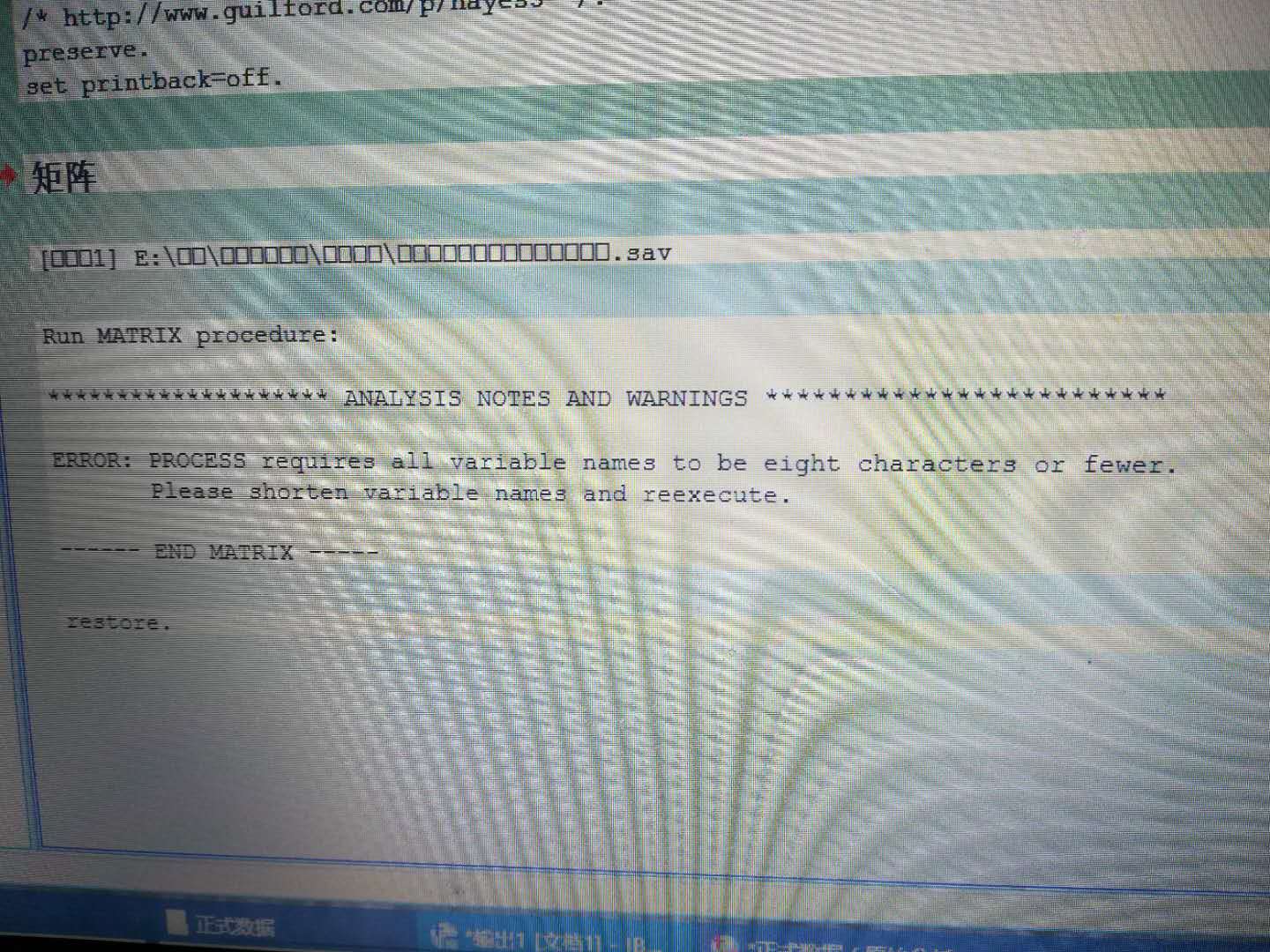 请问一下大家,我运行PROCESS的时候总是出现这个图片的内容,这是什么意思呢?翻译过来之后不知道这个“变量名”到底是指的的数据的哪部分,不知道我哪部分超过8了。非常感谢大家