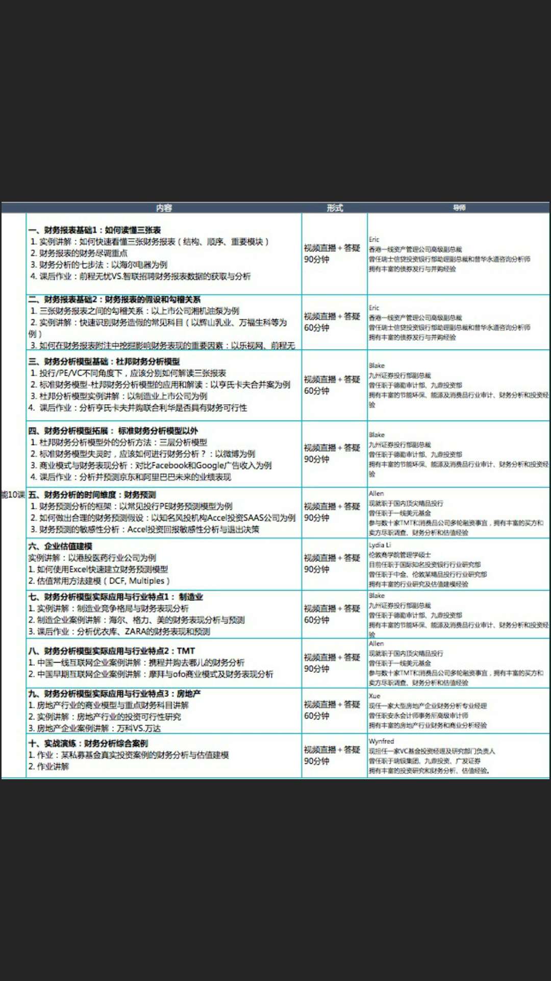 因个人时间原因,特价转让-201711-2017-12的职问财务分析3期课听课权,共10次课,包含TMT/传统制造/房地产行业项目的风险投资/股票分析等投资估值及财务建模预测的实操演示,具体有FCF自由现金流预测等国内外投行/投资财务分析实训菁华,半年听课权,有作业分析可做投行申请。原价599,现400。机不可失,有意的朋友,请加友详聊,微信号:ruc_qingyun,无意者勿扰,加友时请注明原因和身份。课程目录详见附件图片。