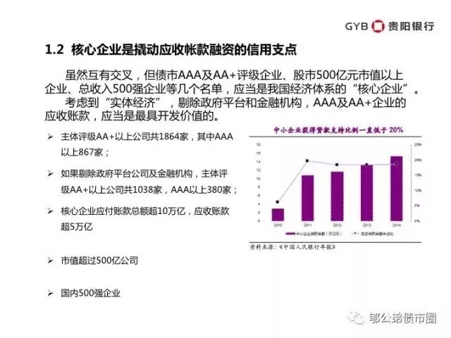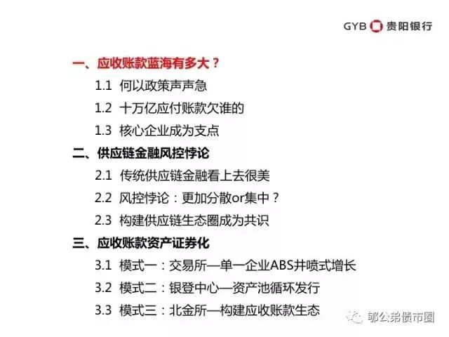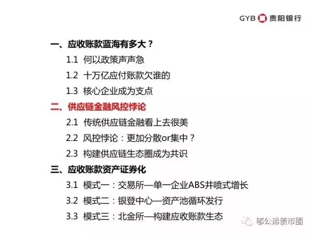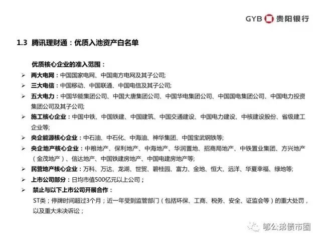 总而言之,应收账款资产证券化以核心企业信用为支点,足以支撑起数千亿、上万亿的市场。在央行的推动下,有着腾讯金融以及各大重量级金融机构的参与,这一市场将迅速爆发式成长,成为金融解决实体经济难题的典范。