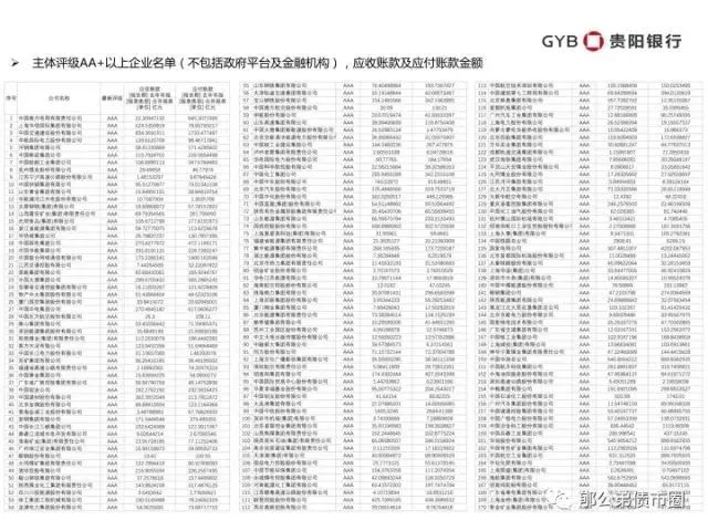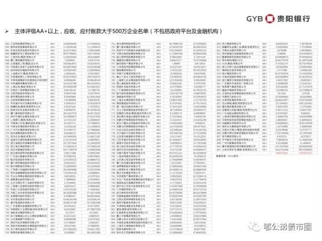 考虑到“实体经济”,剔除政府平台和金融机构,AAA及AA+企业的应收账款,应当是最具开发价值的。