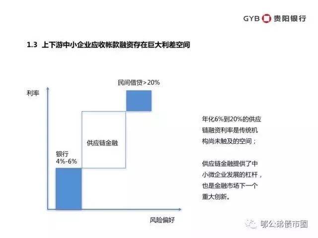 对于供应链金融的市场风险、利率风险,在当前环境下存在天然优势。从上下游企业获取核心企业应付账款、差补应收账款等,利率在6-15%不等,与AAA级资产成本之间有数百个点差,足以应对相当市场风险的压力测试。