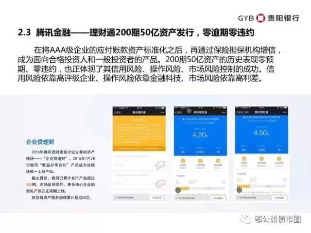 腾讯金融进军供应链金融市场,打造专业级的资产管理平台,专注于依托核心企业开发万亿级高信用产品市场。在理财通市场上,已完成200多期、50亿供应链资产的开发,后续加入产业基金与银行资金,将撬动更大的市场。