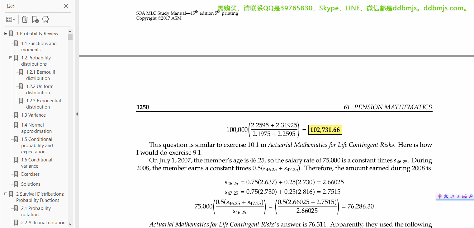 ACTEX MLC 是 Fall 2017 Edition。