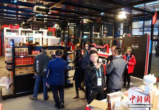 资料图:“互联网之光”博览会上的无人超市,顾客可用二维码进入超市,实现全自动购物。