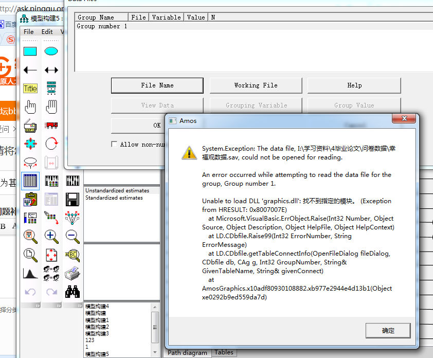 为甚么AMOS打不开数据呢?用的AMOS21.0,SPSS21.0,急求各位大神解答!!!!
