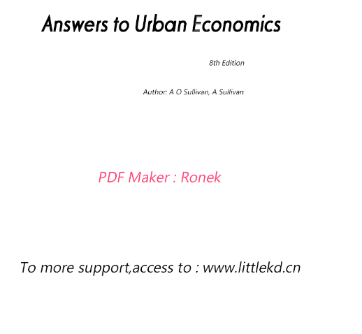 ①本人答案的来源:本人也是学生,学过城市经济学这门课,此答案是我淘宝租用账号,登陆外国专业网站截图,然后添加目录做成的PDF,我对答案内容没有版权,但是我对这个PDF制品有版权。侵权者帖子里的PDF跟我的分毫不差,且首页有我的版权信息,写的很清楚