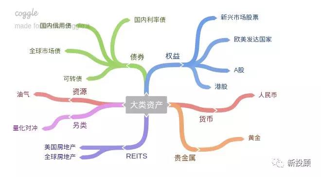 根据资产属性和国内可投资性,将大类资产分成权益、债券、资源、另类(量化对冲)、房地产、贵金属和货币等7类,共14小类。