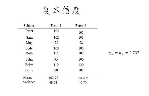 在两个时间点测量同一个变量X,得到X1和X2,然后计算X1与X2的相关,此即重测信度。