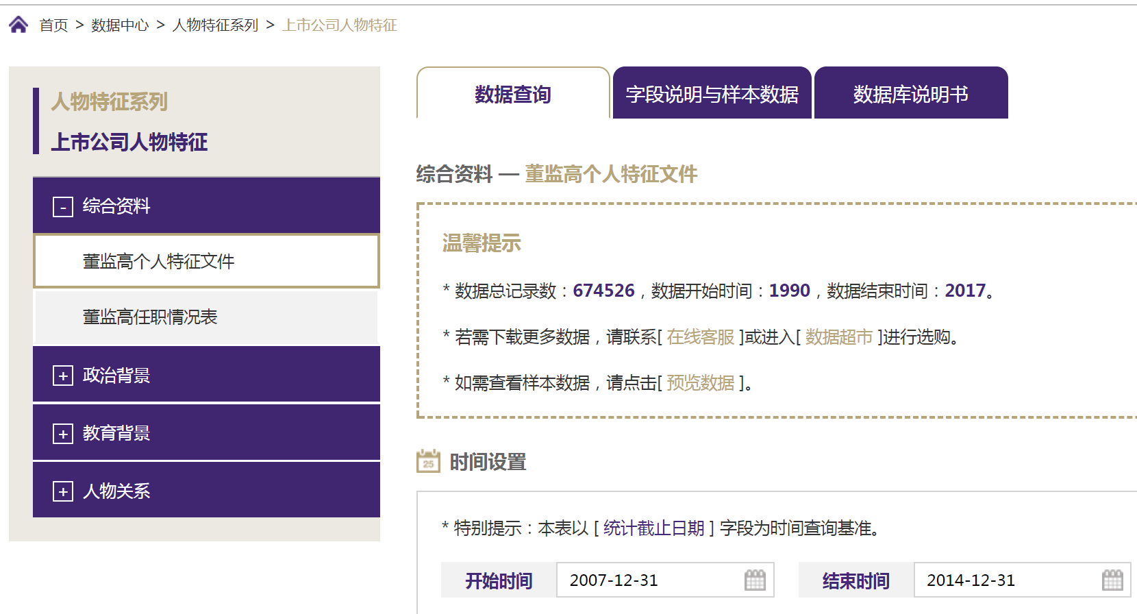 Cherrie1115 发表于 2018-1-10 17:24 求帮忙下载国泰安CSMAR-上市公司人物特征-董监高个人特征2015-2016年末最新数据,谢谢~