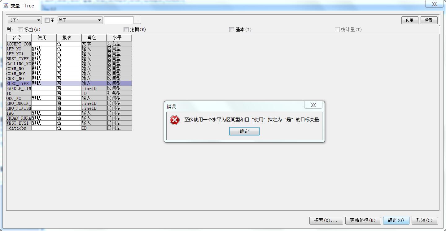 SAS EM中交互式分箱运行时,出现错误,错误原因是必须使用一个目标标量,,应该怎么选中目标变量?