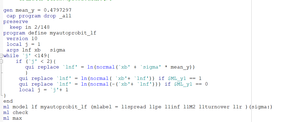 stata中极大似然估计编程求助