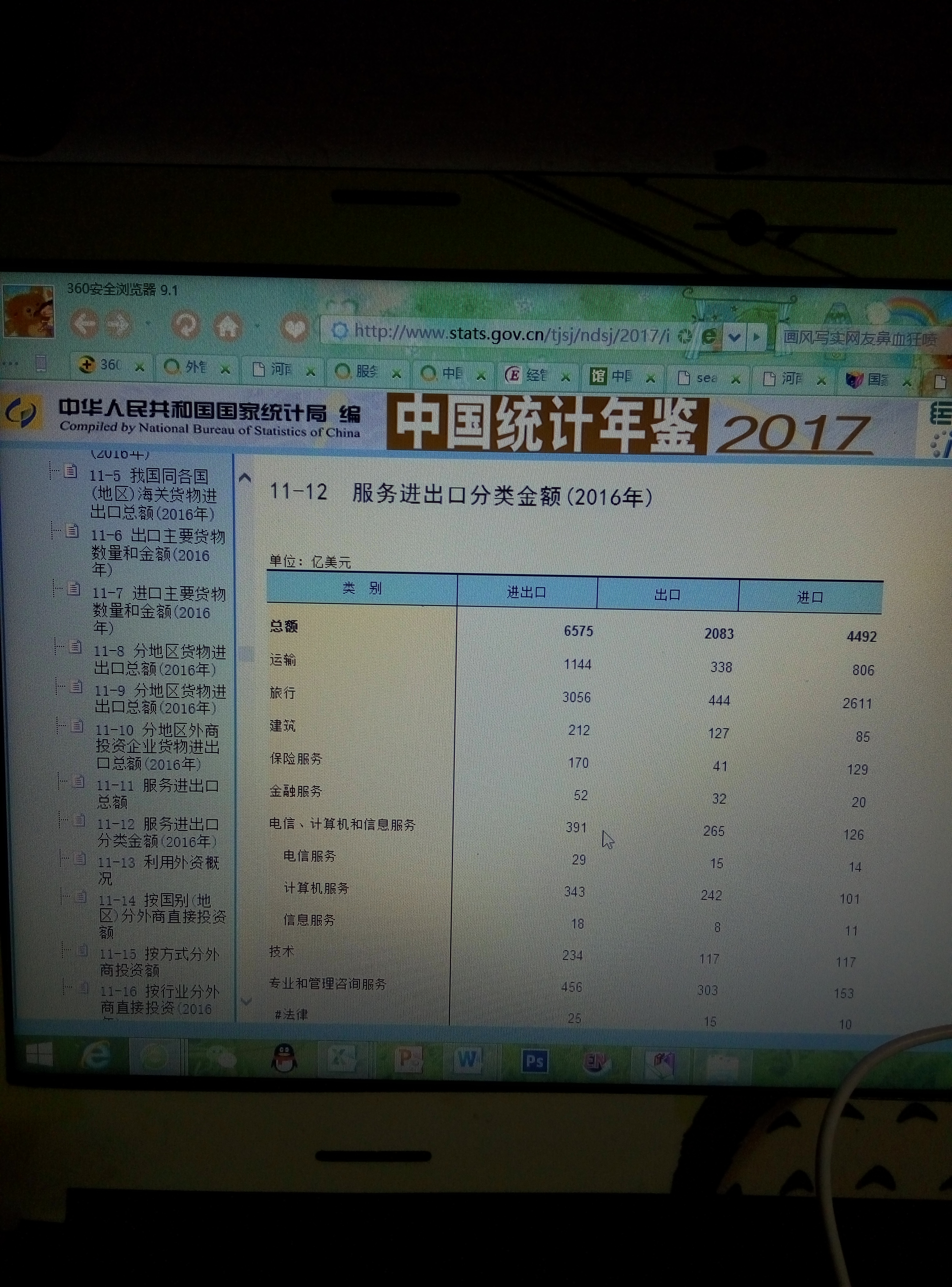 请问大家有没有知道河南省服务贸易数据在哪里找啊?就是河南省国际收支平衡表也行,或者是服务进出口分类金额的也行,因为我需要写论文要用到关于服务贸易的数据也但是我不知道在哪里找,河南省统计年鉴上没有,