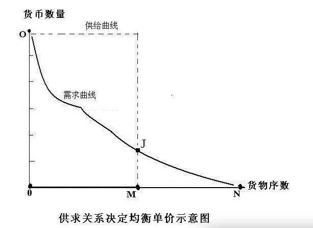 上述的货物数量、供给曲线,和上述的货币数量、需求曲线,决定了一切可能的价格。并且,这种货物货币的数量的客观的决定,