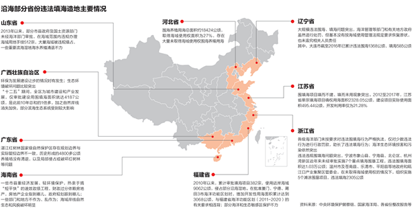 中央环境保护督察组和国家海洋局2017年的督察发现,沿海各地普遍存在向海要地的冲动,普遍存在不合理乃至违法围填海问题。