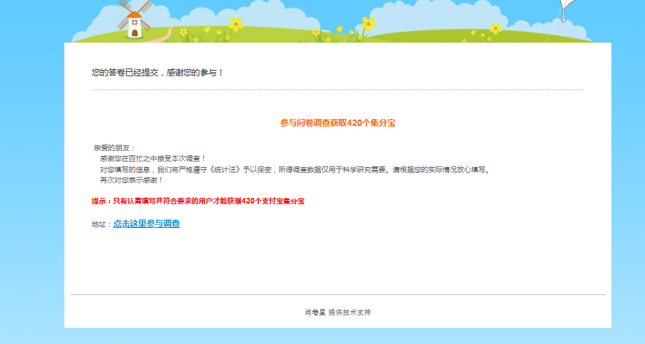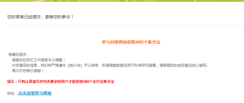 lovelyevaevaeva 发表于 2018-1-24 14:54 我点了提交再才截图的,已做问卷了哦,提交之后就是这个网址,急需论坛币谢谢! https://www.wjx.cn/wjx/j ...