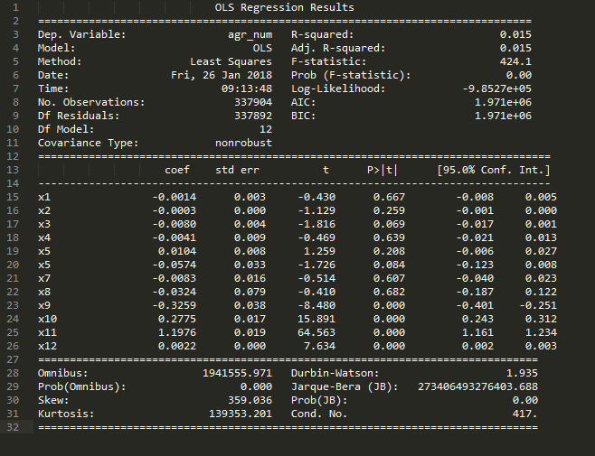 3、自己看了书编写了 python 的OLS代码,输出了回归结果,主要看y和其他几个x1 x2 x3 x4 x5 x6等的想关系