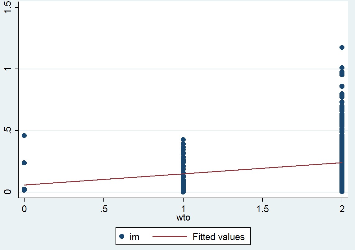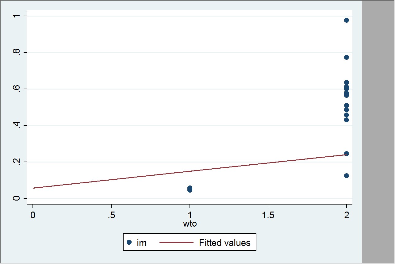 wto | -.0492579 .0211784 -2.33 0.021 -.0909368 -.0075791