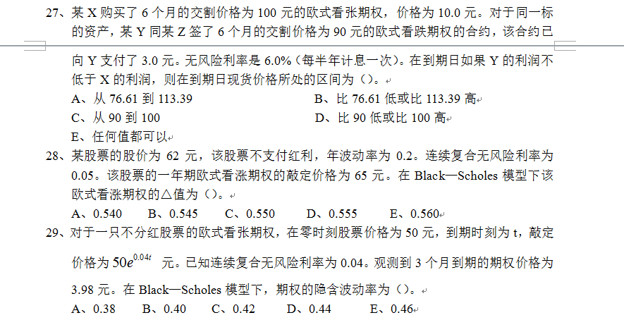 求金融数学大神帮忙做下三道题,重金悬赏30论坛币,要写过程哦