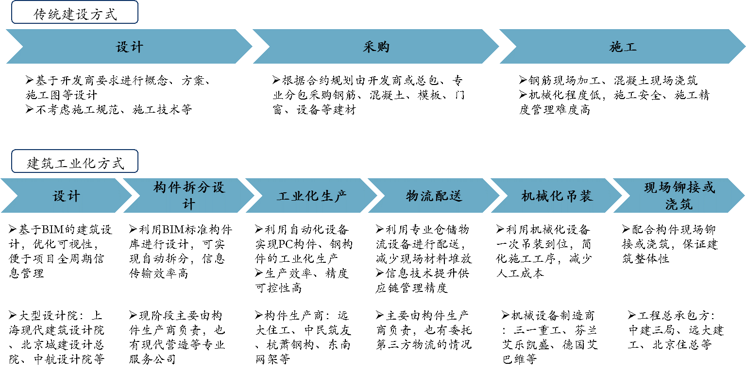 钢结构装配式建筑、预制混凝土装配式建筑是目前建筑工业化实施的两大典型路径;