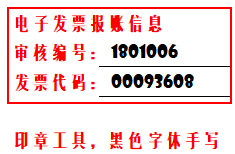 2、刻一个条形章:“电子发票报账编号:___________;电子发票号码:__________",审单的会计,在电子发票报销单上盖章。