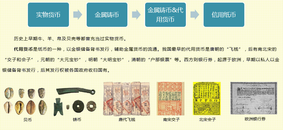 货币的形态从产生至今已有多种形态(不包括数字货币)。