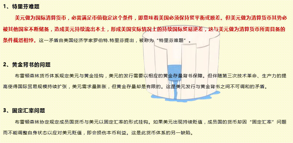 2)、纸通货发行成本极低,在铸币税利益驱动下,易造成货币超发。在这种货币制度下,央行的信用管理尤为重要。如果各国央行突破信用的道德底线滥发纸通货,最终将不可避免引起货币体系的再次崩塌。