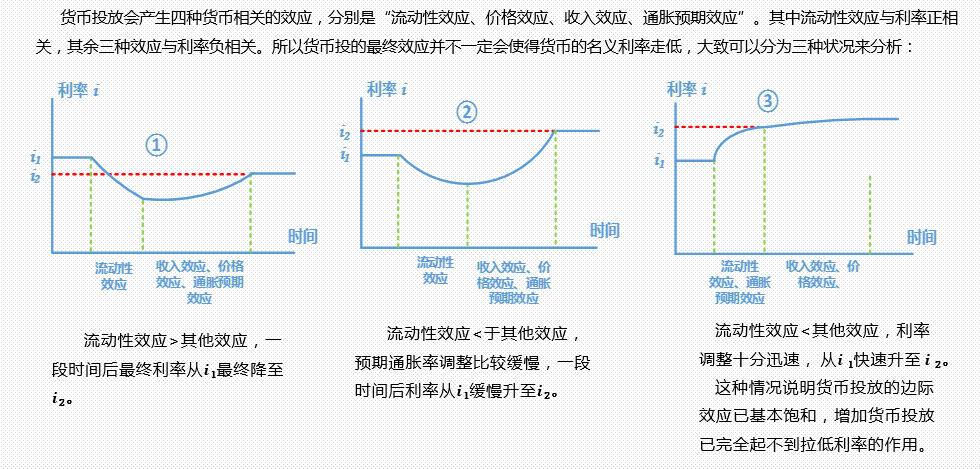 (注:下面图片中有个错误,因无法在图片上修改所在此标注。流动性效应与利率成负相关,其他三个效应正相关)