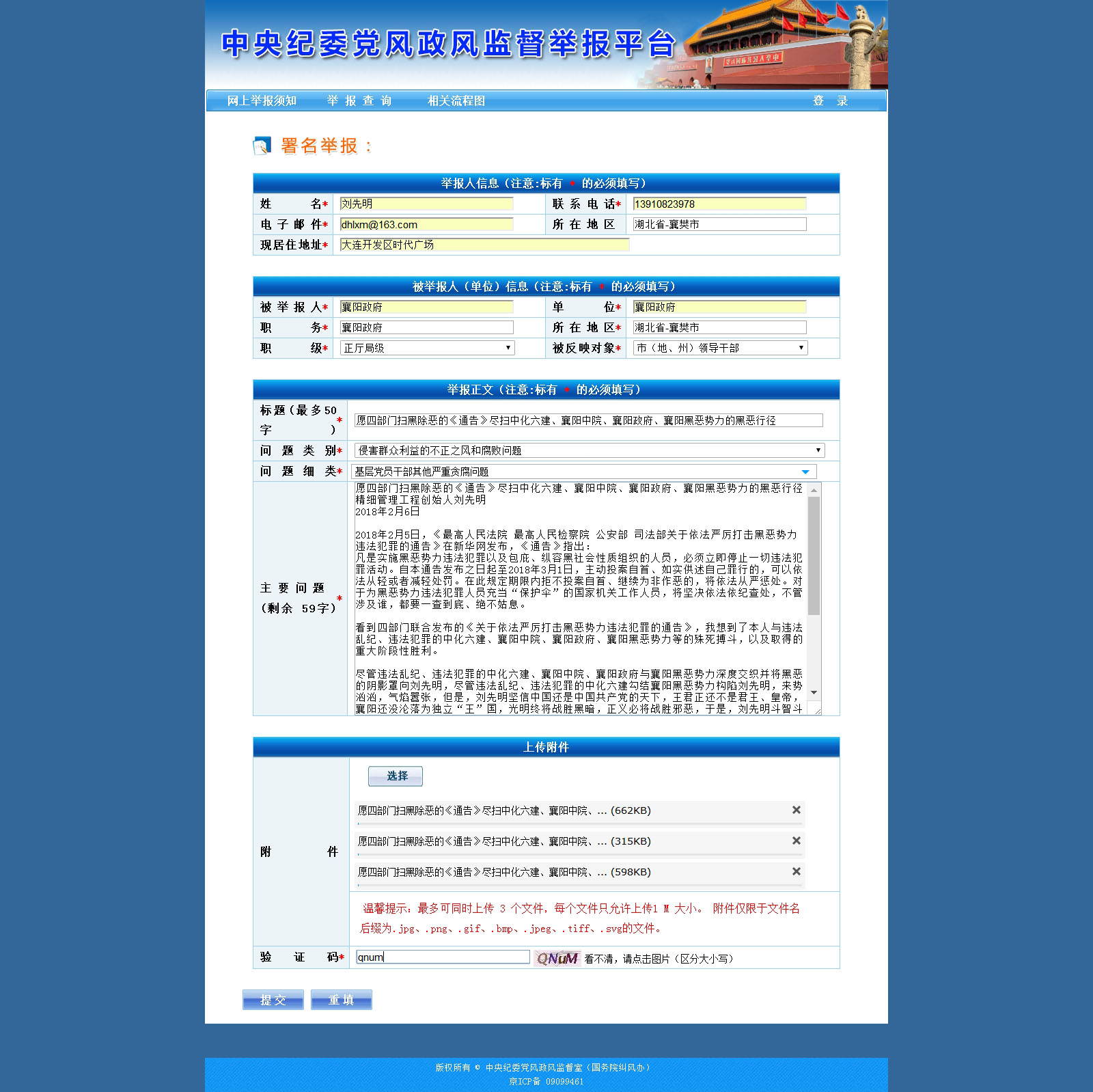 刘先明向中纪委举报襄阳纪委、襄阳作风办