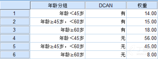 数据情况: 对比不同年龄分组(3组:<45岁,≥45且<60,≥60)的DCAN发病率差异是否具有显著性。