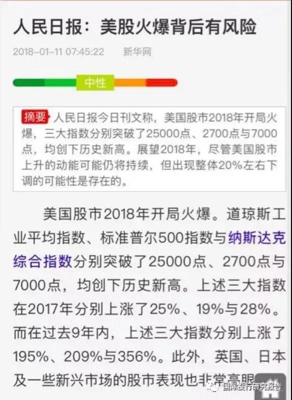 这篇文章的作者是中国社科院世界经济与政治研究所研究员张明,他在1月11日的文章中指出,美国股市2018年开局火爆,三大指数均创下历史新高。