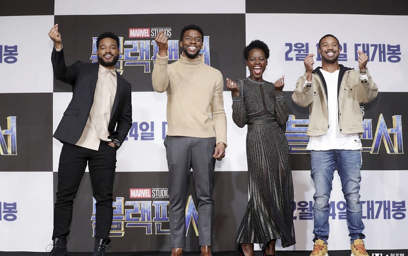 漫威首部黑人超级英雄电影《黑豹》今日(5日)在韩国举行首映。导演瑞恩·库格勒携“黑豹”查德维克·博斯曼、迈克尔·B·乔丹和露皮塔·尼永奥三位主演亮相新闻发布会。