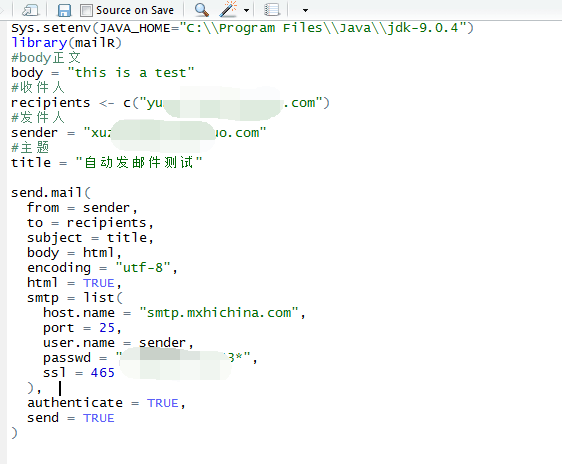 一开始我认为是mailR的问题,去看了相关文档,确认没错。