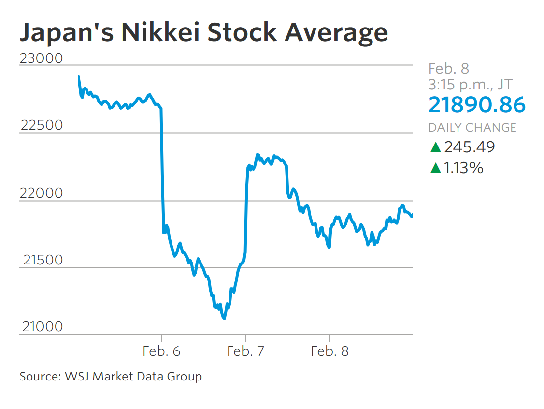Japan’s Nikkei Stock Average ended 1.1% higher, after surrendering most of its morning gains earlier in the session.
