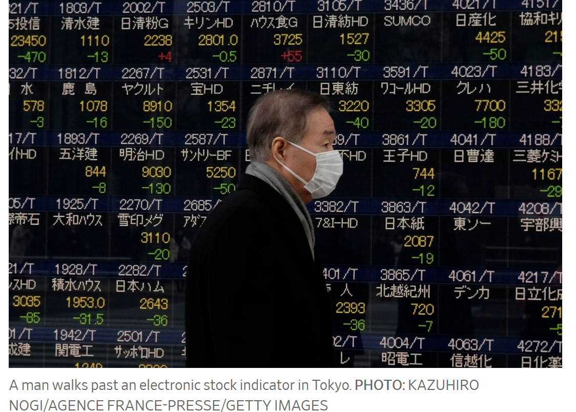 A man walks past an electronic stock indicator in Tokyo. Photo: kazuhiro nogi/Agence France-Presse/Getty Images