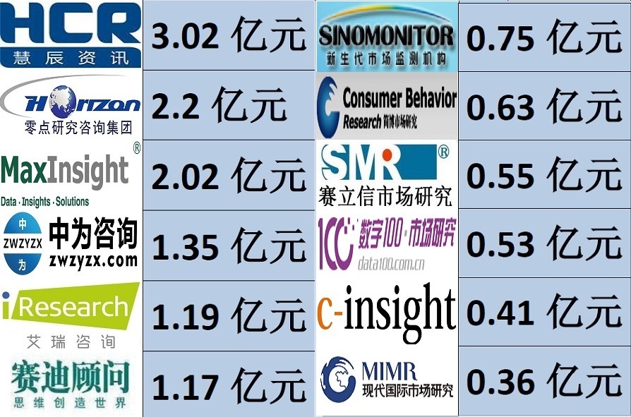 中国咨询市场十大有影响力的调查研究公司情况(营业收入数据排名):