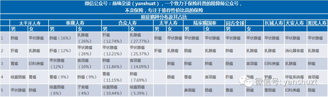 男女性的高发肿瘤略有不同,结合几家数据会得出如下信息。
