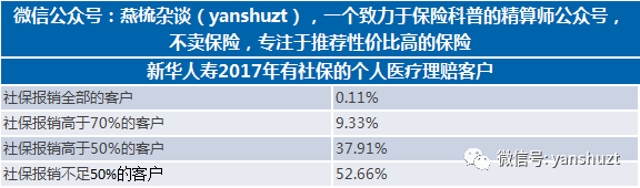 新华人寿的数据显示,2017年医疗账单最高为64万元,52.66%的客户社保保险不足50%,仅靠社保不足以弥补损失。
