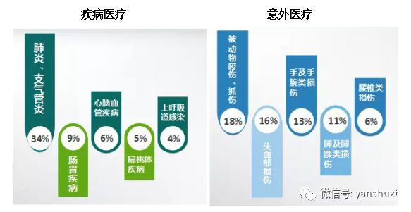 合众人寿申请疾病医疗险的人群中,肺炎及支气管炎出险比例最高。意外医疗出险人群中,被动物抓伤、咬伤出险比例较高;四肢及头面部也是主要的受伤部位(如下图所示)。