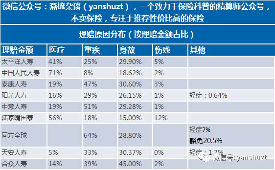 注1:阳光人寿、陆家嘴国泰人寿、天安人寿公布了各类原因理赔金额,上述占比根据金额推算而来。