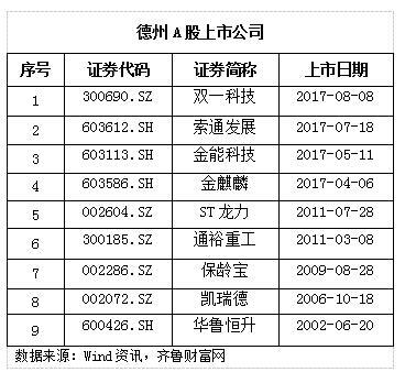 据齐鲁财 富网查询Wind得知,山东194家A股上市公司中,大部分公司已经发布了年度业绩预告,目前,德州共有9家A股上市公司,上市公司家数与济宁相同,共列山东省第7位,2017年,德州共有4家新上市企业,新上市公司中除金麒麟(603586)未发布业绩预告外,其余三家均已发布,业绩类型均显增长。