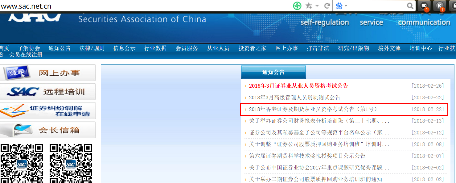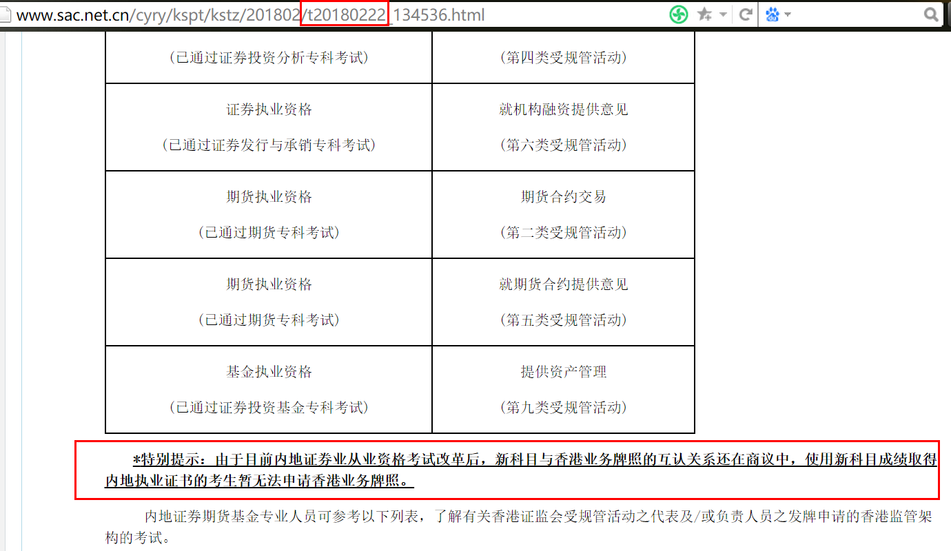 上面提到大陆新科目考生取得的成绩能否豁免香港“认可行业资格”的考试科目问题,今天特地到中国证券协会网站和香港证监会网站、香港证券业协会网站都看了,就目前的政策,还是无法豁免,但旧科目的考生可以豁免。下面我就上具体的证明了,让各位考生能够少走弯路,了解政策,