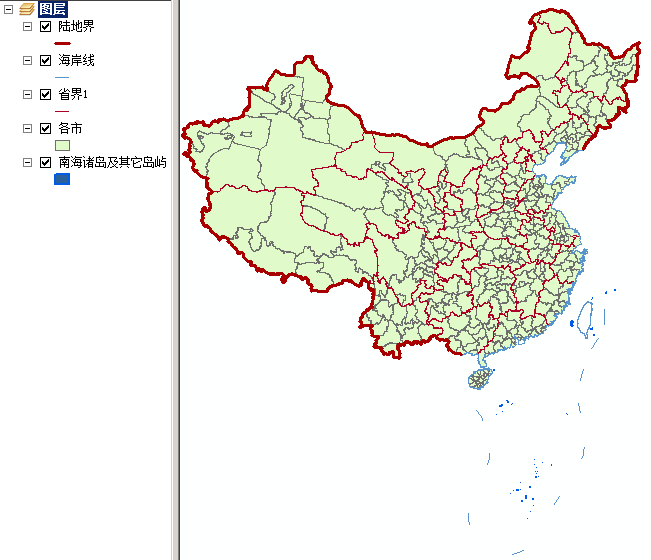 数据经过严格的拓扑检查:既是国界又是省界的地方,确保陆地国界和省界完全重叠;即是省界又是市界的地方确保省界完全与市界重叠。